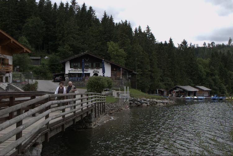 Die Strecke der Waldbahn führte hinter der Klausenhütte (Webcam) quer durch das Bild. Den Abfluß des Spitzingsee an der Südostecke (Rote Valepp) überquerte ein Gleisstutzen, der etwa 500 m weit dem Ufer folgte....