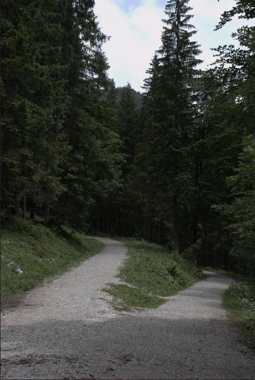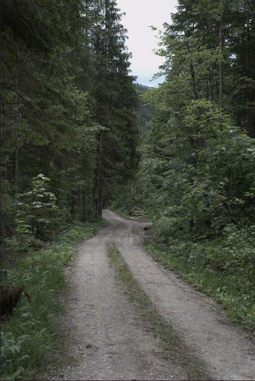 Vom E-Werk führt die Trasse auf dem heutigen Fahrweg entlang der Roten Valepp.